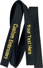 کمربند مشکی ورزش های رزمی مدل تک لایه تسمه جنس کتان با گلدوزی سفارشی دو طرف
